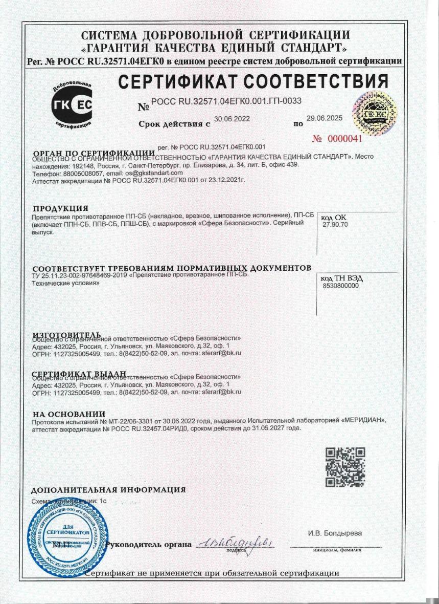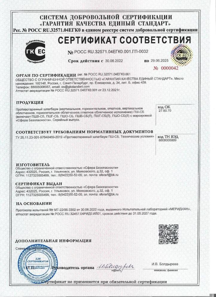 Наше производство соответствует требованиям, предъявляемым к современным производствам металлоконструкций. Все изделия на каждом этапе их производства проходят технологический контроль. После сборки и подключения автоматики устройства тщательно проверяются на соответствие техническим условиям и паспорту на изделие и признаются годными для эксплуатации. Технология нашего производства сводит к минимуму вероятность брака. ООО "Сфера Безопасности" прошло проверку и получило сертификат системы менеджмента качества ИСО 9001, который подтверждается ежегодным инспекционным контролем. Все наши изделия получили сертификат соответствия Техническим условиям, зарегистрированным ФГУП "Стандартинформ".