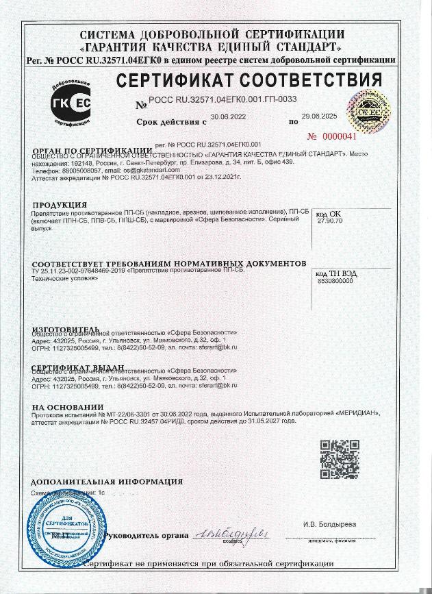 Компания Сфера Безопасности осуществляет разработку, поставку, монтаж и обслуживание противотаранных устройств, бронированных изделий и прочих инженерных средств защиты по всей РФ.
